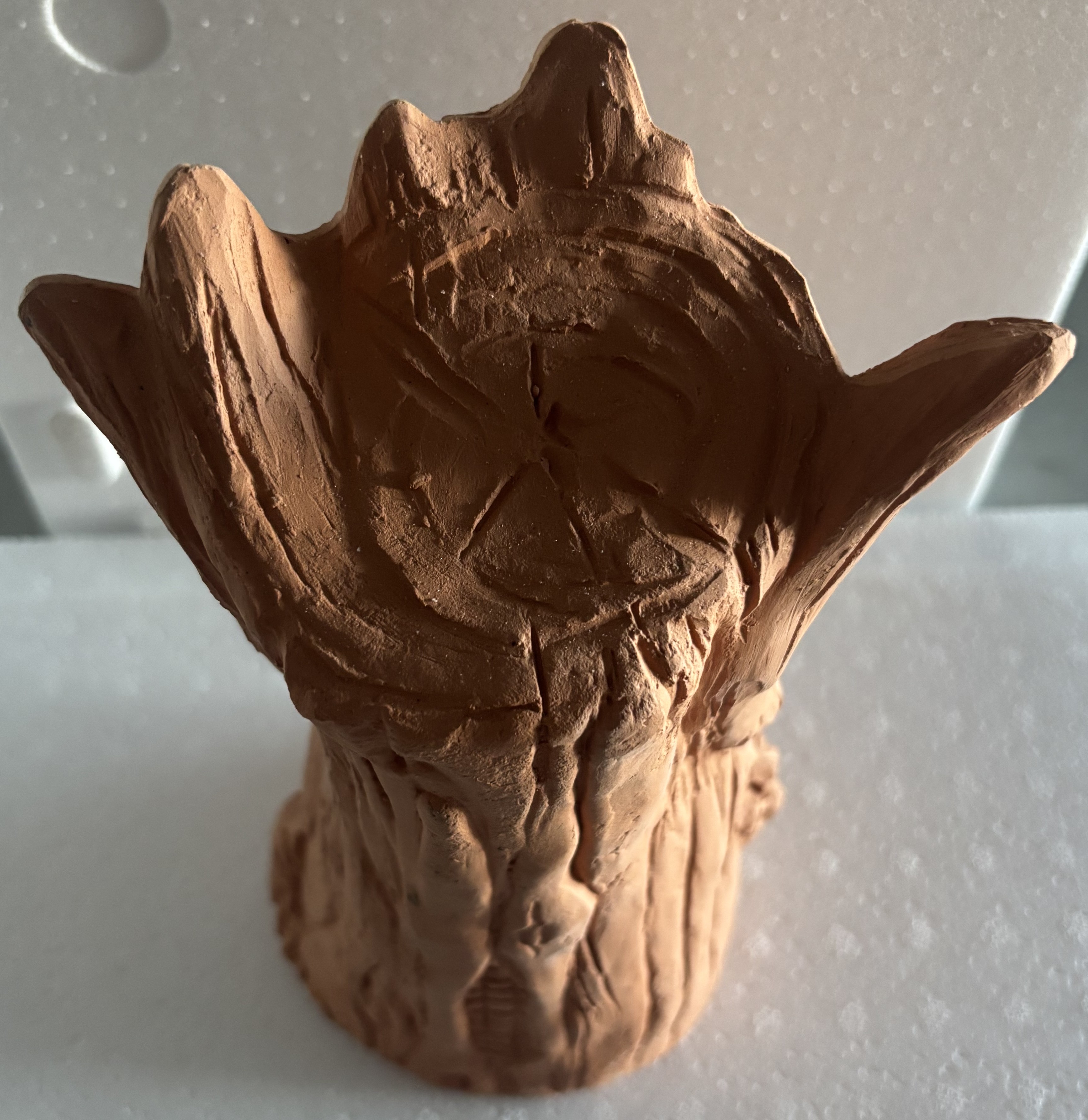Handgefertigter Baumstamm m. Höhle aus Ton – Deko & Ablaichhilfe für Aquarium, Gartenteich oder Innenraum