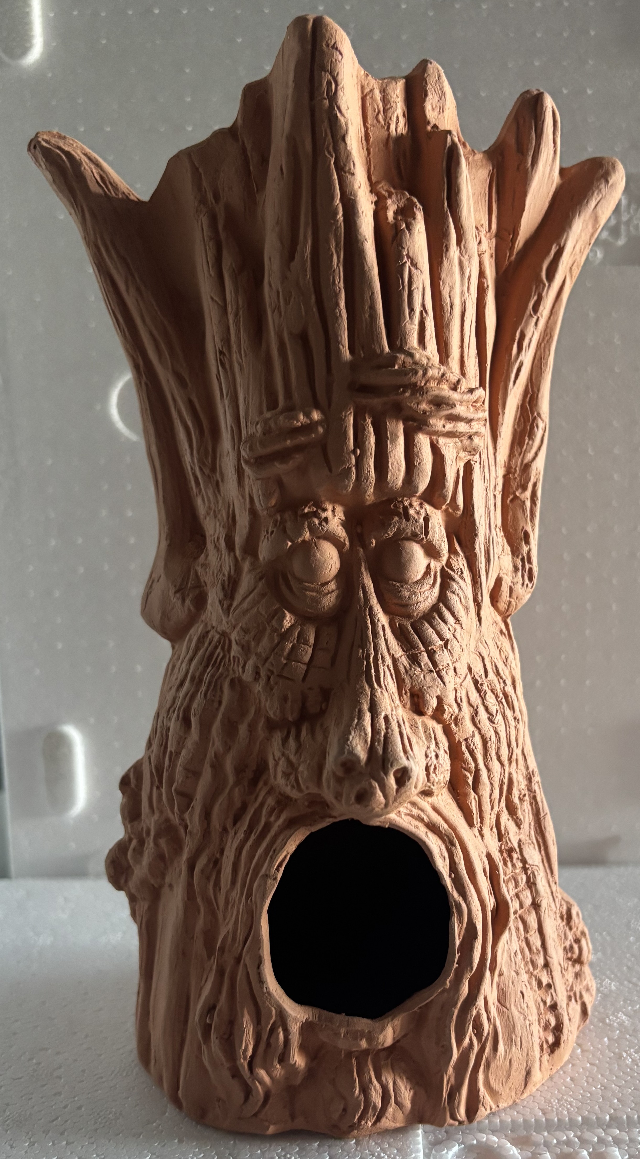 Ein echter Hingucker mit Funktion: Dieser handgefertigte Baumstamm aus gebranntem Ton verbindet stilvolle Deko mit praktischem Nutzen. Ob im Aquarium, im Gartenteich oder als originelles Deko-Element im Innenraum – das Design sorgt überall für Aufmerksamkeit und bietet zugleich Fischen einen sicheren Rückzugsort oder Ablaichplatz.