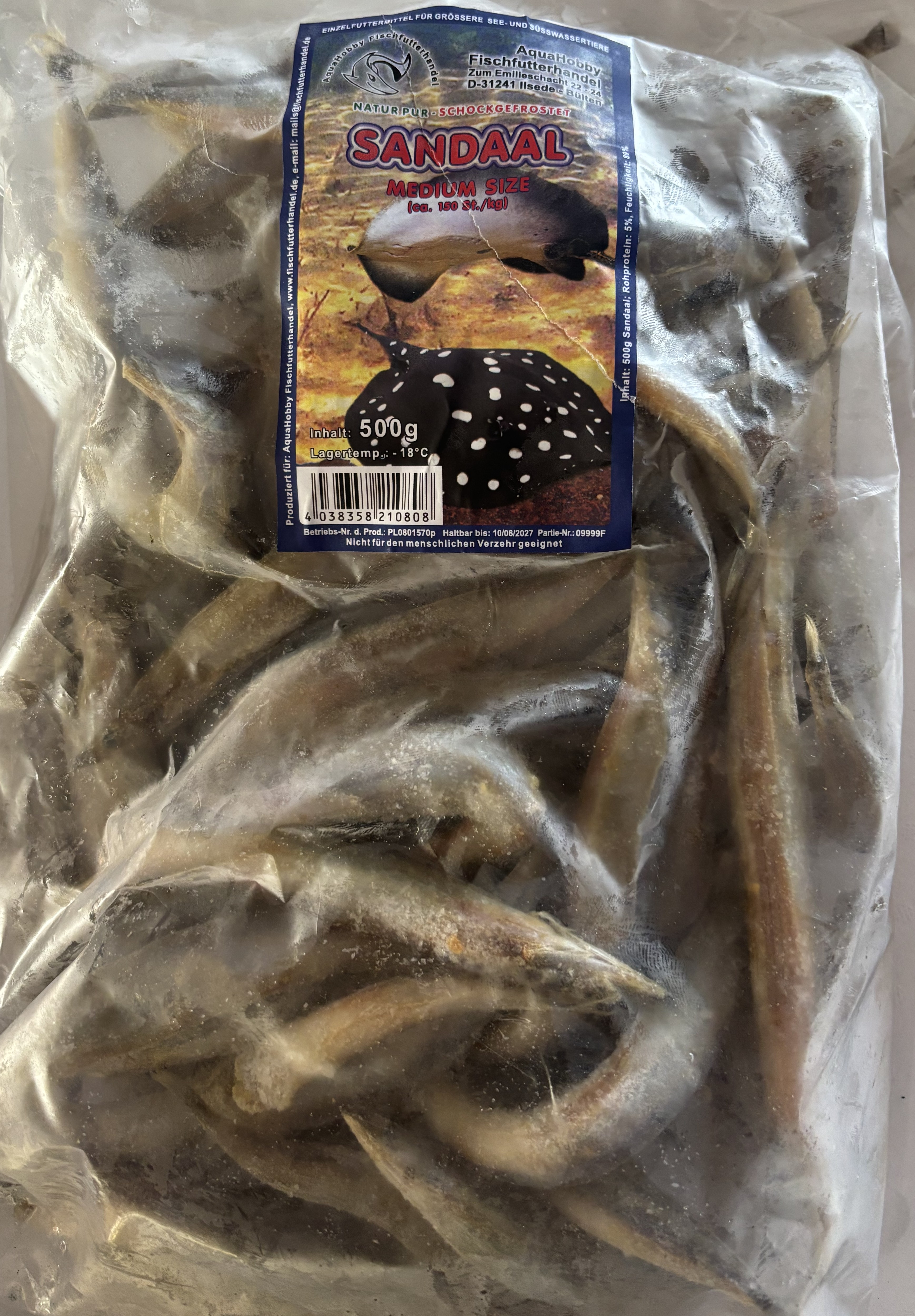 Frostfutter Sandaale sind kleine langgestreckte Meeresfische, sie sind ein hochwertiges Fischfutter für große Raubfische,Rochen, Schildkröten und viele Reptilien darstellen. Die Fische sind einzeln dem Frostfutter - Beutel entnehmbar.