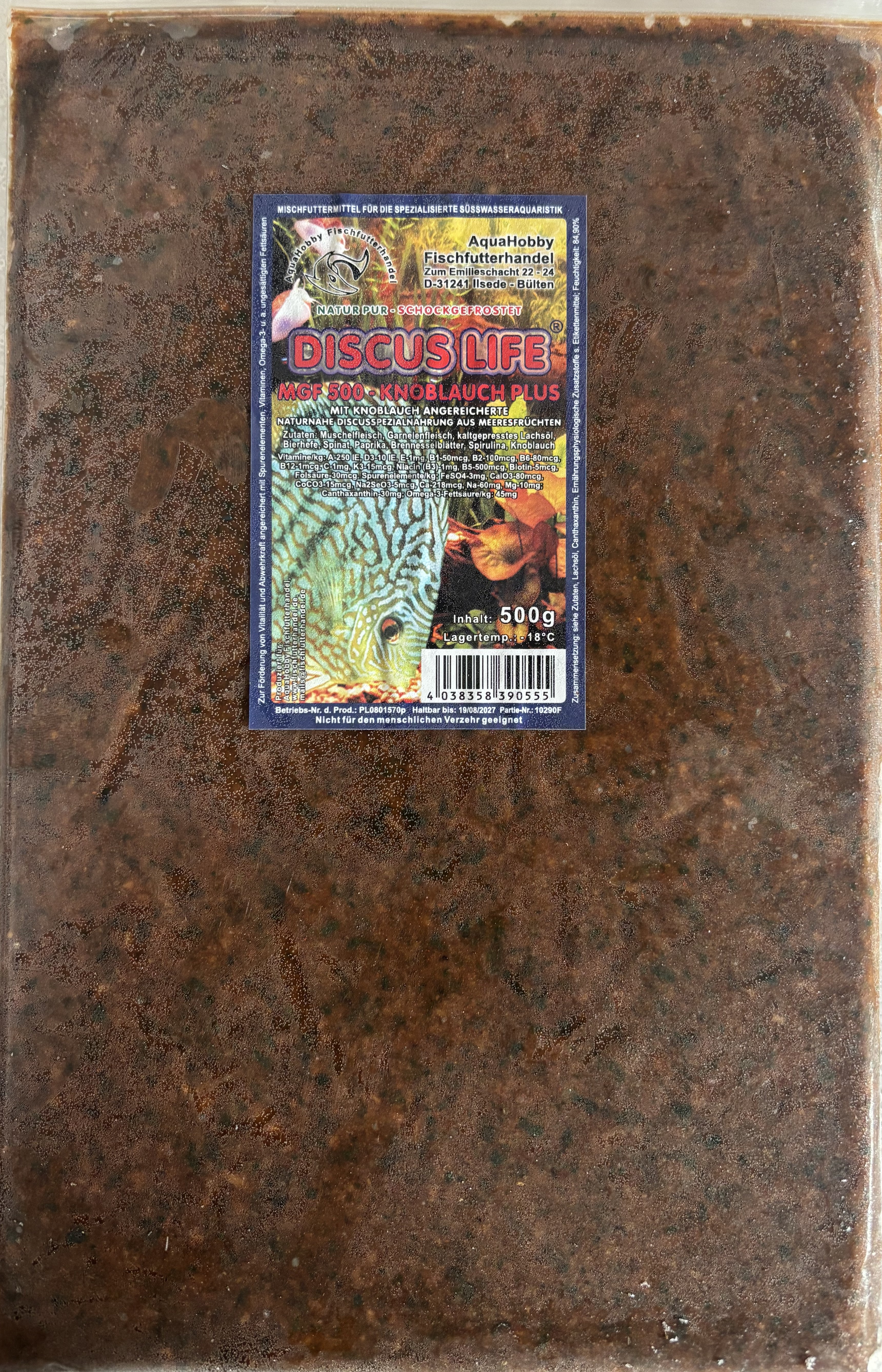 Discus Life MGF 500 Knoblauch Plus mit hohem Anteil an natürlichen, farbverstärkenden Inhaltsstoffen und Meeresfrüchten.
