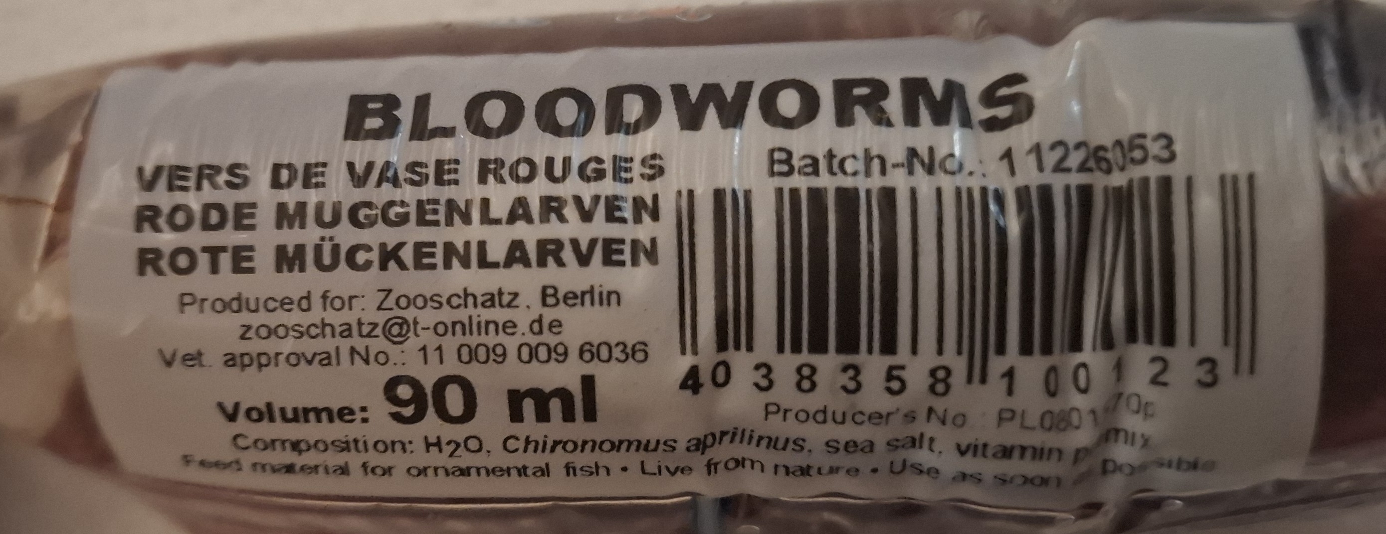 Zusammensetzung: Rote Mückenlarven - Wirbellose Wassertiere (10.1.1), Wasser, Vitamine, Spurenelemente.