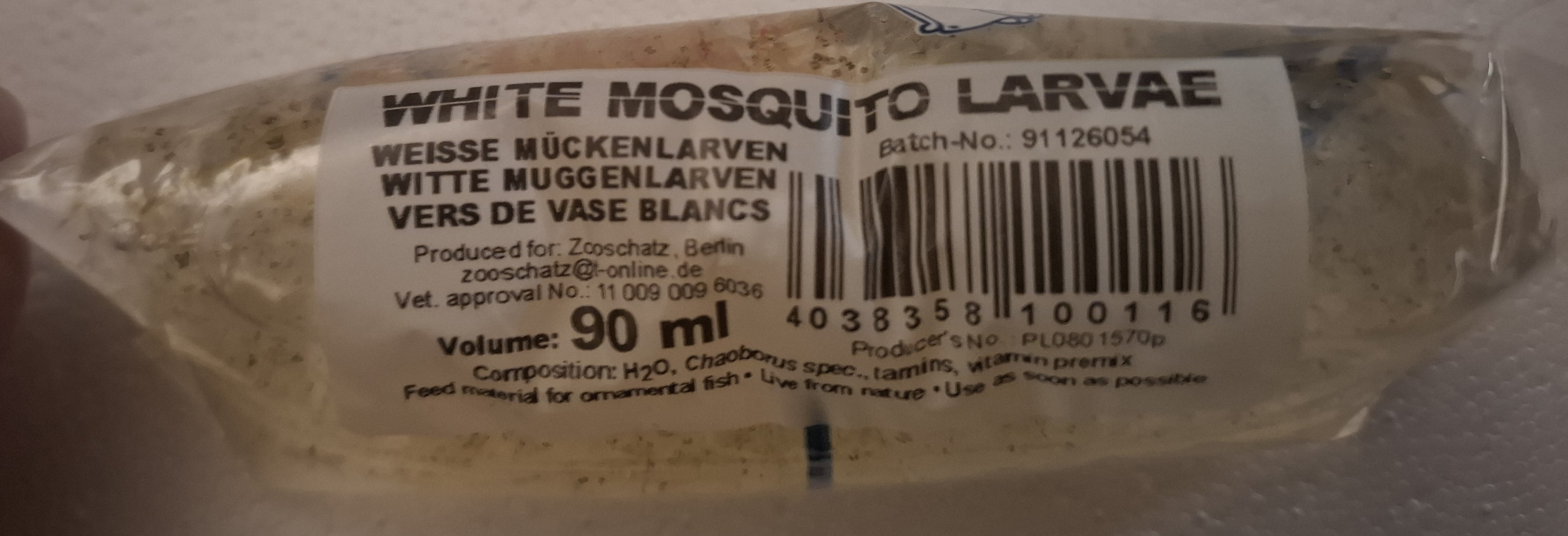 Zusammensetzung: Weiße Mückenlarven - Wirbellose Wassertiere (10.1.1), Wasser, Vitamine, Spurenelemente.