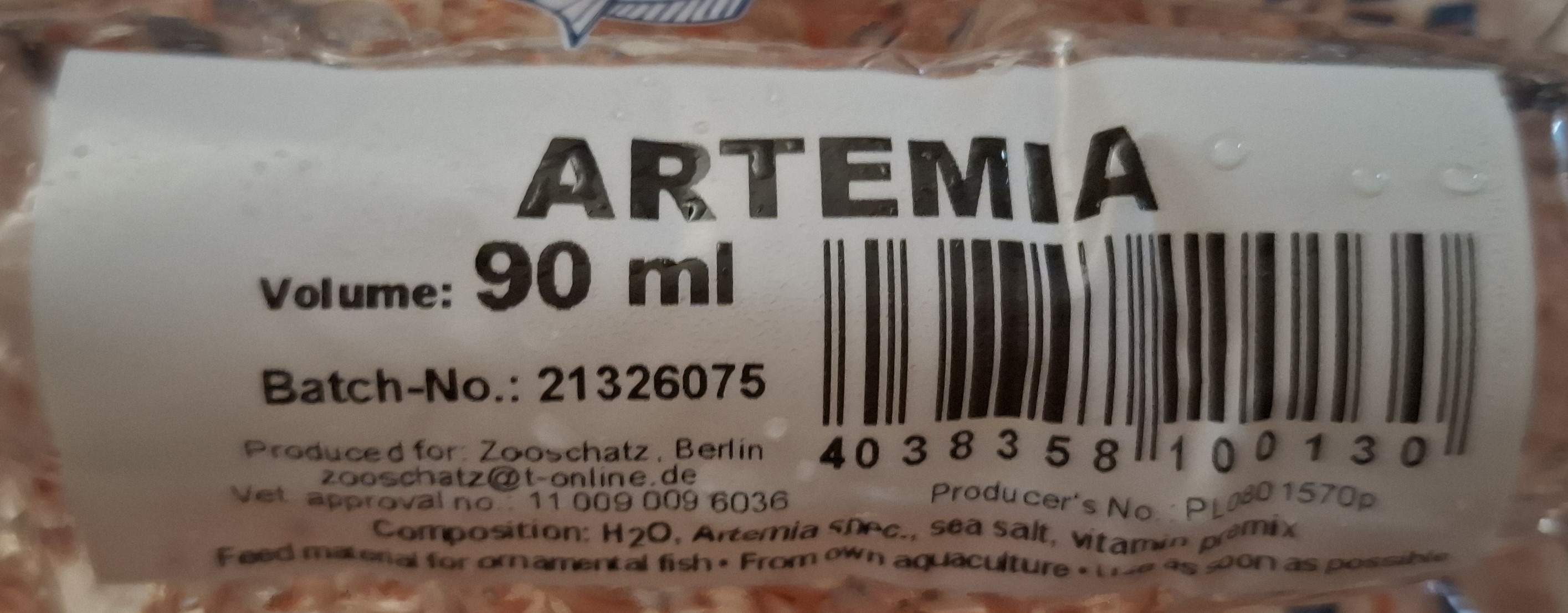 Zusammensetzung: Artemia - Wirbellose Wassertiere (10.1.1), Wasser, Vitamine, Spurenelemente.