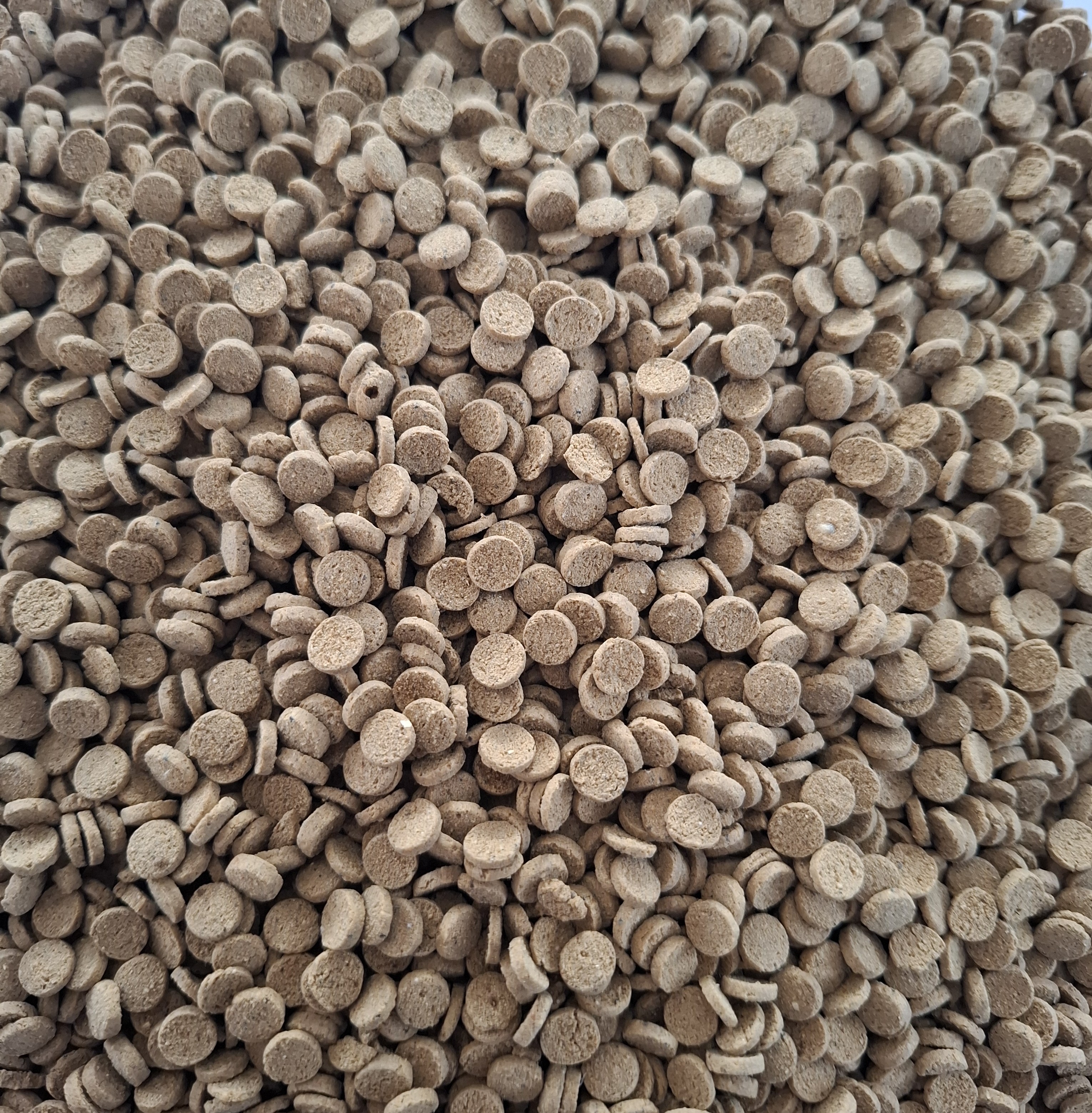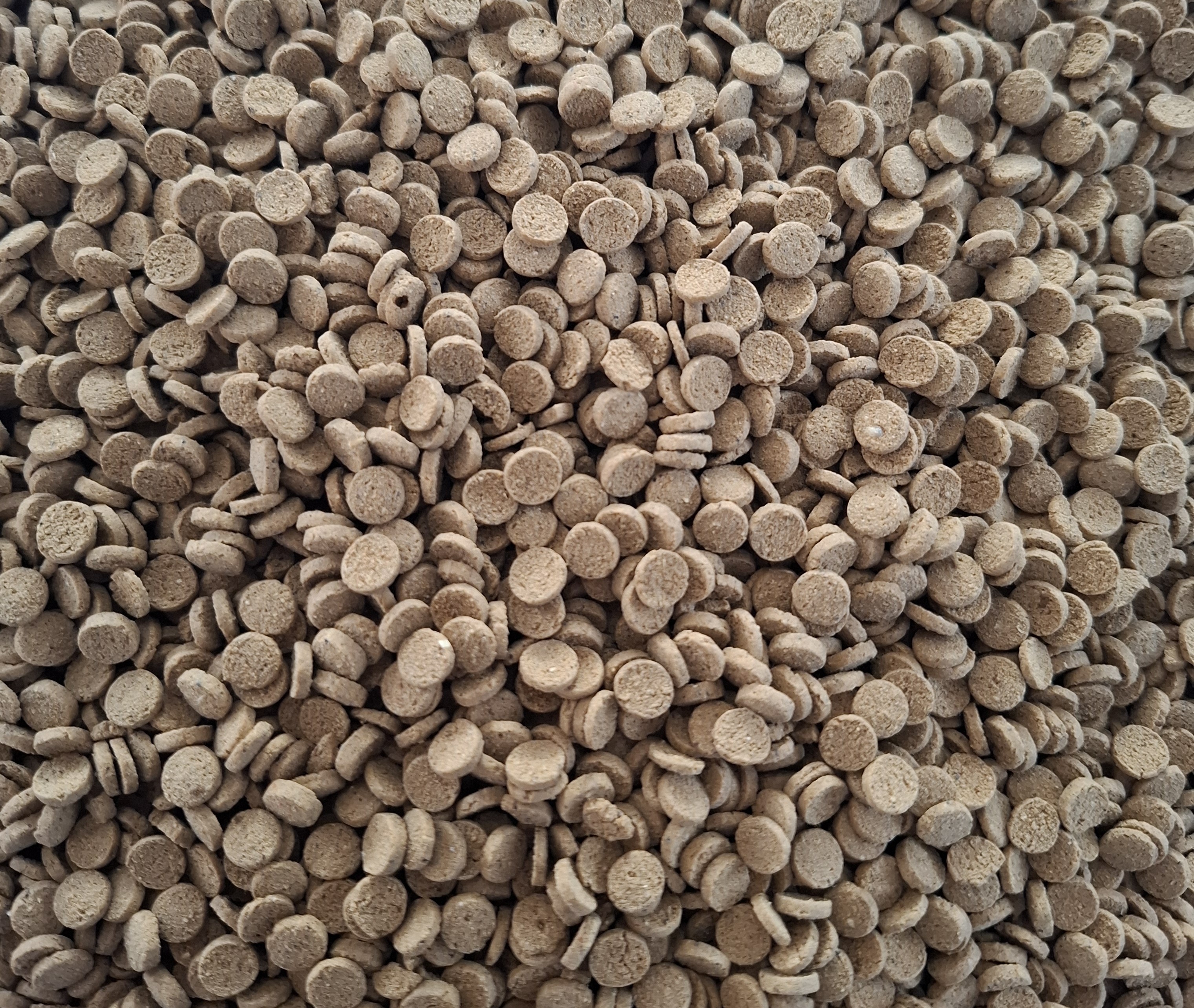 Zusammensetzung: Fischmehl, tierische Fette , Weizenmehl , Sojaschrott, Gammarus , Weizenkeime , Guargummi , Seetang (getrocknet)